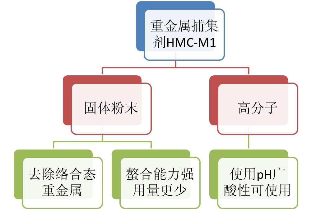 重金屬捕集劑HMC-M1是一種有機白色高分子化合物,微觀分子中含有大量的重金屬螯合基團,能夠吸附重金屬離子銅、鋅、鎳等,形成沉淀。