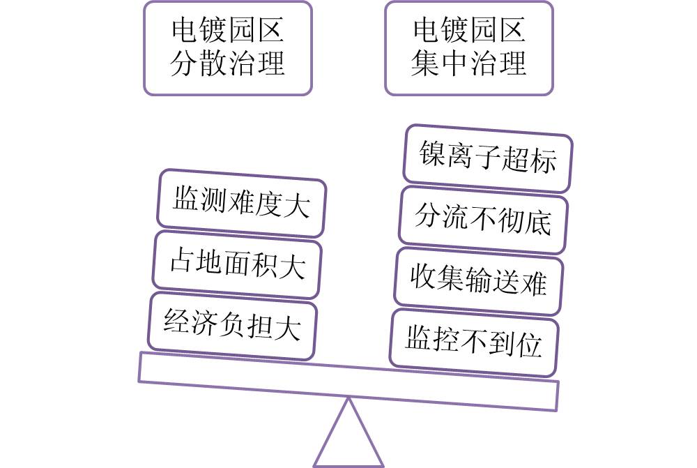 電鍍集中區(qū)分散治理,園區(qū)內(nèi)每個企業(yè)建設(shè)自己的電鍍廢水處理系統(tǒng),廢水由企業(yè)自行處理,各項水質(zhì)指標都合格后,才允許排放。這種治理模式雖然達到了分散事故危險和責任分擔的目的,但存在下列缺點:1)廢水處理設(shè)施總占地面積大,資源利用率較低;2)人力資源、設(shè)備浪費嚴重,重復建設(shè)現(xiàn)象較多,企業(yè)經(jīng)濟負擔重;3)環(huán)保系統(tǒng)監(jiān)管難度大,不利于專業(yè)化運行操作,效果保證度沒有集中治理模式好。
