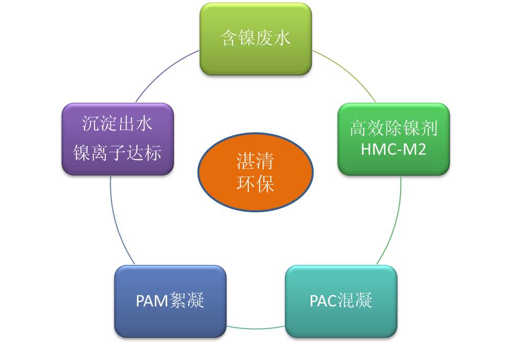 使用高效除鎳劑HMC-M2處理含鎳廢水,具體工藝步驟如下所示: