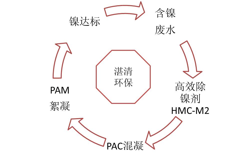 對(duì)于三種含鎳廢水,使用湛清環(huán)保的高效除鎳劑HMC-M2進(jìn)行螯合處理,可以處理較難處理的化學(xué)鍍鎳含鎳廢水,鋅鎳合金含鎳廢水,處理至表三標(biāo)準(zhǔn)。具體使用步驟如下所示: