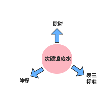 次磷鎳廢水是指化學(xué)鍍鎳清洗水,鍍件在化學(xué)鍍鎳之后沖洗所產(chǎn)生的廢水,磷和鎳的濃度在幾十到幾百毫克每升不等,在廢水中,存在殘余的次磷酸鈉以及絡(luò)合鎳,次磷酸鹽的溶解度高,傳統(tǒng)的除磷劑無(wú)法沉淀去除,絡(luò)合鎳的絡(luò)合劑與鎳的結(jié)合力強(qiáng),一般的重捕劑或者硫化鈉無(wú)法把鎳離子生成沉淀。
