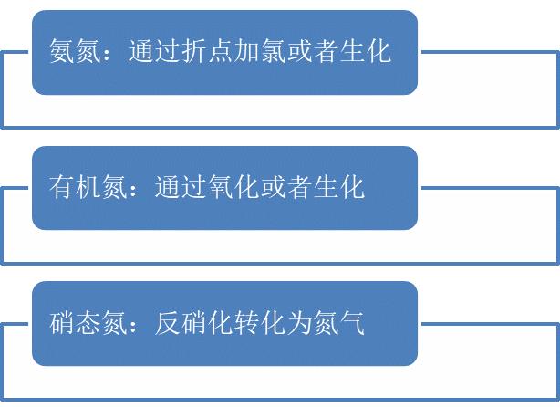 目前根據(jù)總氮的分類,可以通過以下方法對(duì)于總氮進(jìn)行去除。其中如果是氨氮,需要通過折點(diǎn)加氯氧化,可以把氨氮轉(zhuǎn)化為氮?dú)?,氨氮也可以通過生化進(jìn)行去除,但是一般去除以后,氨氮轉(zhuǎn)變?yōu)橄鯌B(tài)氮。對(duì)于有機(jī)氮,需要通過氧化的辦法,將有機(jī)氮氧化為氨氮,或者有機(jī)氮在生化的作用之下變?yōu)榘钡?br/>