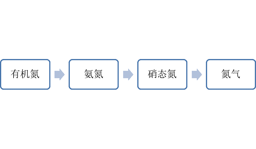 在通過生化方法去除總氮的過程中,一般是以下流程,有機(jī)氮在氨化的作用之下轉(zhuǎn)為氨氮,氨氮在硝化細(xì)菌的作用之下轉(zhuǎn)化為硝態(tài)氮,最后在反硝化細(xì)菌的作用之下轉(zhuǎn)化為氮?dú)狻F渲性谟袡C(jī)氮和氨氮,硝態(tài)氮的轉(zhuǎn)化過程中都能夠去除良好,但是在反硝化去除硝態(tài)氮變?yōu)榈獨(dú)獾倪^程中,往往由于硝態(tài)氮的反硝化過程效率低,導(dǎo)致廢水總氮超標(biāo)。