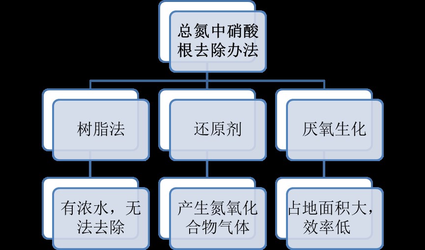 目前國內(nèi)對于硝態(tài)氮沒有很好的技術(shù),其中,主要是以下技術(shù)。第一,使用樹脂吸收硝酸根離子,目前大多數(shù)是用在生產(chǎn)上,對于高濃度硝酸根離子,但是在吸附以后,會有反沖洗產(chǎn)生的濃硝酸根產(chǎn)生,仍然無法處理。第二,還原劑還原,還原劑還原難以控制,大多數(shù)會還原為氮氧化合物氣體,污染環(huán)境。第三,使用厭氧工藝進(jìn)行去除,但是在傳統(tǒng)生化中,由于厭氧細(xì)菌的生存比較苛刻,因此去除硝態(tài)氮的效果非常差。