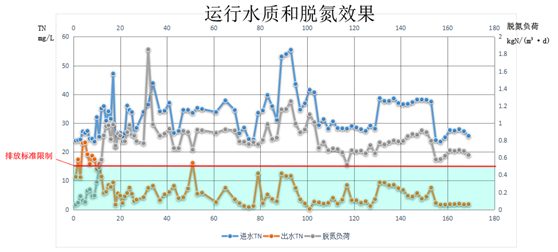 脫氮效率高——正常運行脫氮負(fù)荷1kg N/m3·d,出水總氮穩(wěn)定達(dá)標(biāo)