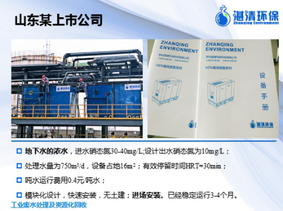 山東某化工廠產(chǎn)生800噸/天的工業(yè)循環(huán)冷卻水,其中循環(huán)水總氮濃度在30-50mg/L之間波動(dòng),原先考慮用厭氧-好氧-沉淀的工藝進(jìn)行處理,占地面積大,湛清環(huán)保經(jīng)過小試-中試以后,驗(yàn)證了技術(shù)可行性,經(jīng)過設(shè)計(jì),上了兩套總氮處理設(shè)備進(jìn)行處理循環(huán)水總氮,目前出水總氮穩(wěn)定在10mg/L以下,達(dá)到外排標(biāo)準(zhǔn)。