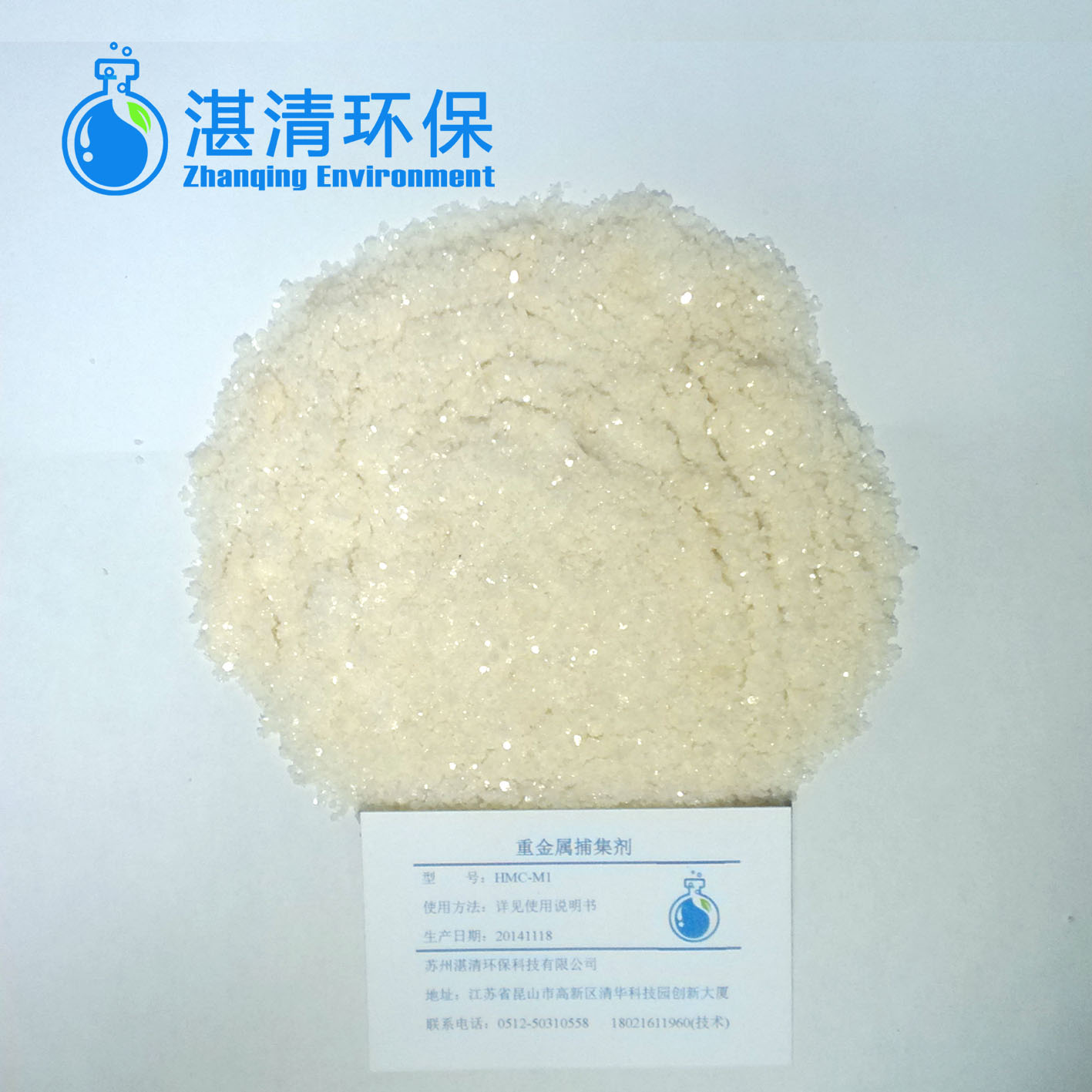 固體重捕劑是一種高分子有機化合物,在水中,螯合基團帶有負電荷,容易極化變形產(chǎn)生負電場,從而吸附正電荷離子如重金屬離子銅、鎳、鋅、鉻等,重捕劑M1相比于液體重捕劑DTC類來說,螯合基團的結(jié)構(gòu)更加復(fù)雜,產(chǎn)生的電場力更強,甚至能夠與絡(luò)合態(tài)、化學態(tài)的重金屬產(chǎn)生螯合作用,比如氨基磺酸鎳,檸檬酸鎳,酒石酸鎳,EDTA鎳等。