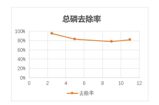 可以看出,在pH=2.5時(shí),磷的去除效果最好,甚至可以達(dá)到95%及以上。而在堿性條件下效果明顯偏差,這可能是由于OH-的影響。