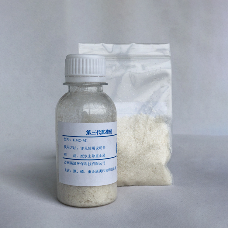 重金屬捕捉劑呈白色晶體狀狀的高分子有機化合物,是一種能夠與廢水重金屬離子強力螯合的藥劑,重金屬捕捉劑可以與廢水中重金屬離子如鉻、鎳、銅、鋅、汞、錳、鎘迅速發(fā)生螯合反應(yīng),生成水不溶性的高分子螯合絮狀沉淀,從而達到完全去除重金屬離子的目的。