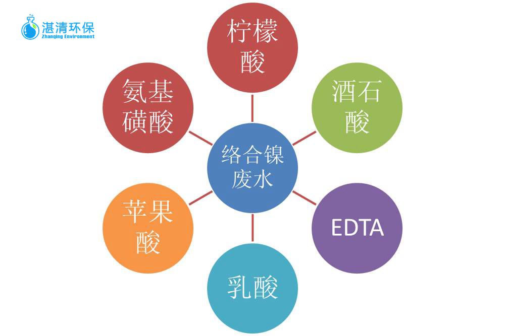 在化學(xué)鍍鎳時,所使用的電鍍液中多存在絡(luò)合劑,如檸檬酸、蘋果酸、酒石酸、EDTA等,在沖洗電鍍零件時所產(chǎn)生的清洗廢水含有絡(luò)合劑以及鎳離子,因此這類電鍍廢水也被稱為絡(luò)合鎳廢水。